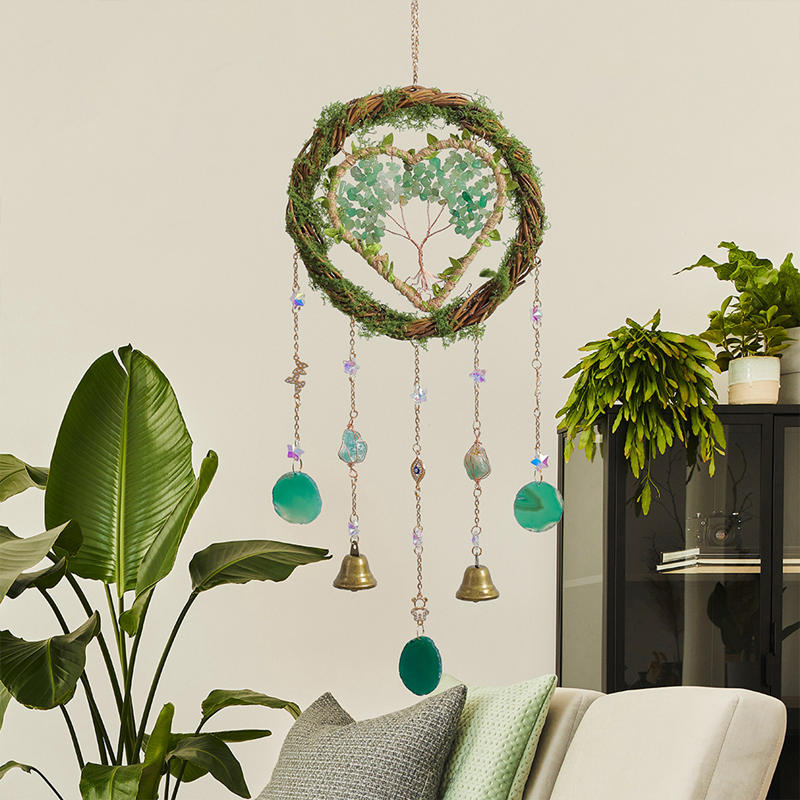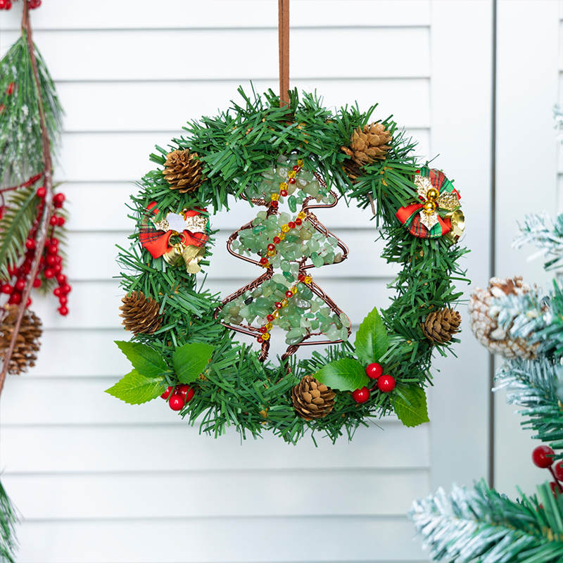 Artificial Wreath Wind Chimes Bells Window Hanging Ornament Crystal Tree Suncatcher Sun Catcher Home Decoration For Christmas - Green aventurine