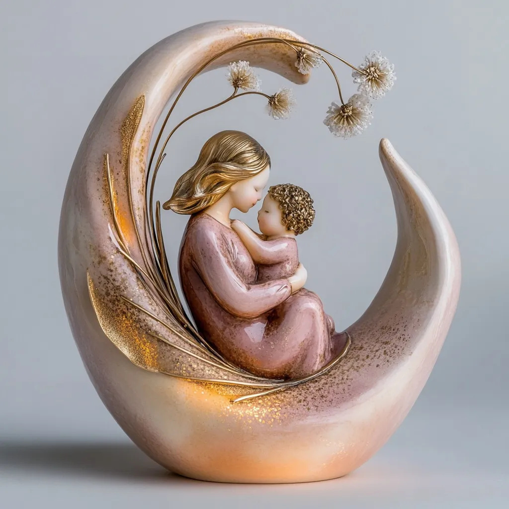 Mother And Child Statue Resin Ornament For Home Decor, 12x12x4cm