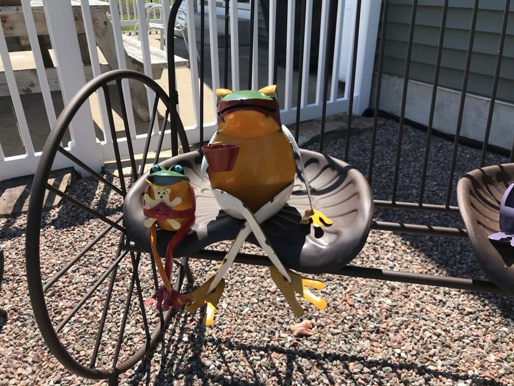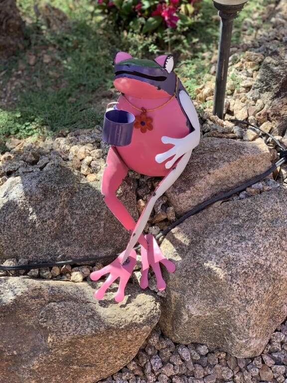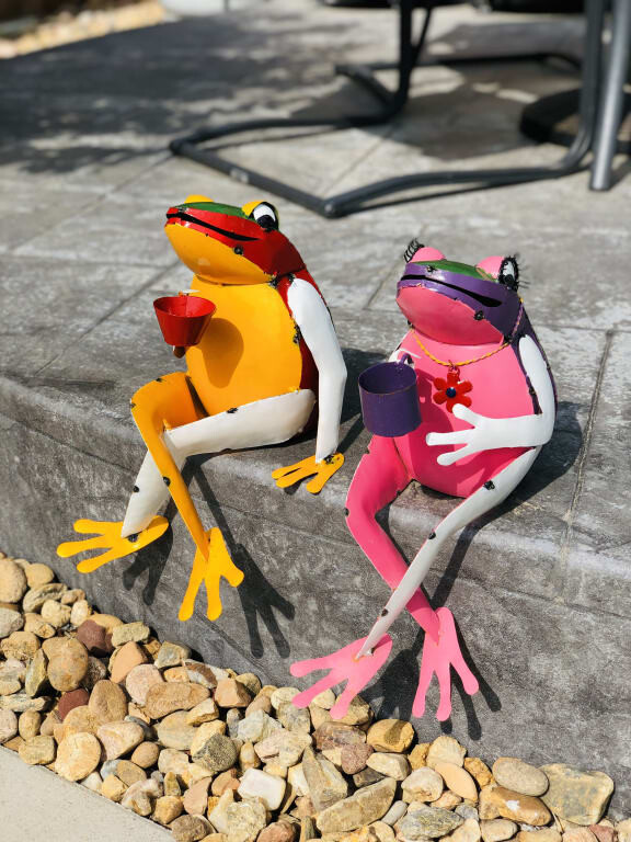Adorable! Bought both of these adorable frogs and love them! They certainly build character into our outdoor setting. They definitely get a smile out of visitors , and me everyday! Love ❤️ them!