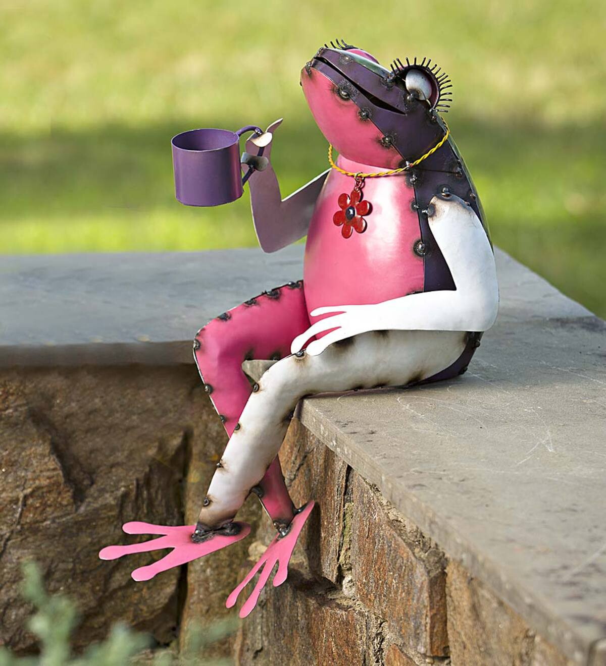 Complete with long eyelashes and a flower charm necklace, our frog garden statue makes a great conversation piece.