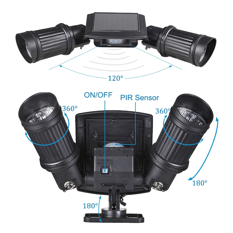 The motion sensors have a detection range of 360 degrees and a detection range of 6 metres. It will change to bright-light mode illumination for 30 seconds When it senses motion.